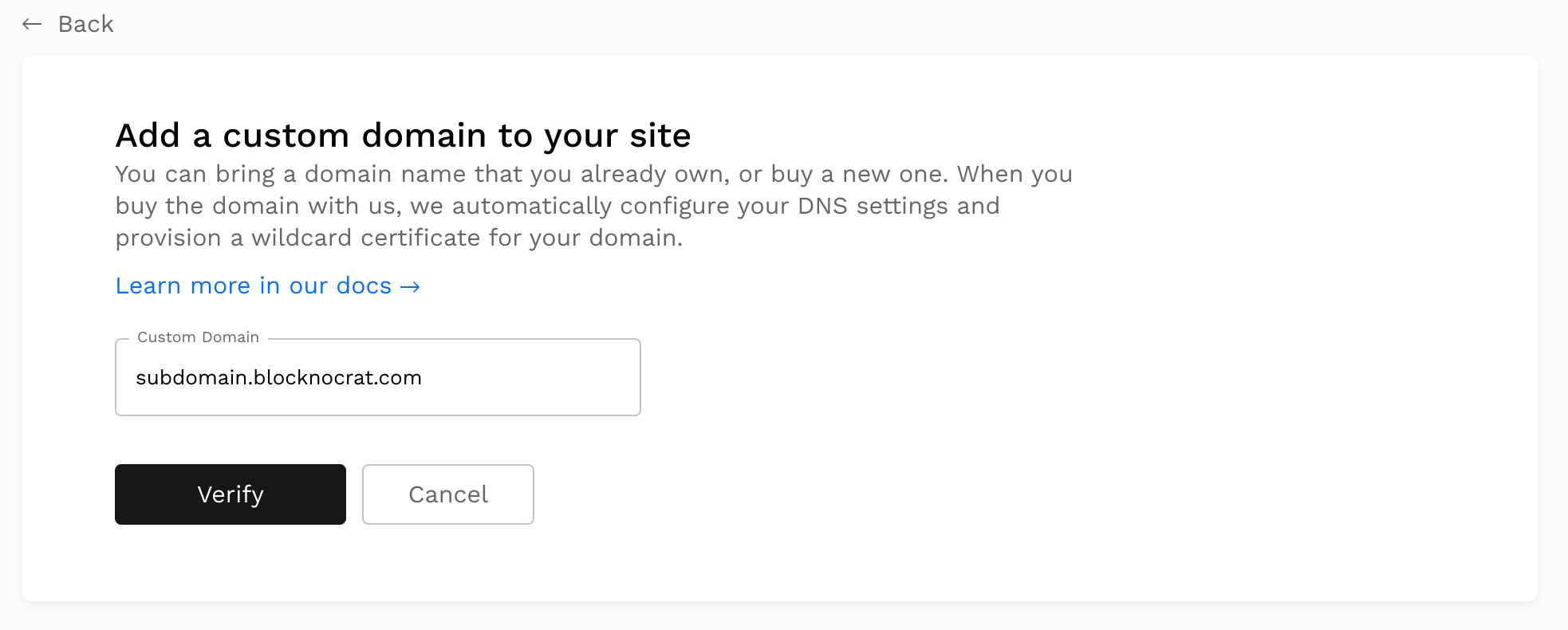 We then must wait for the domain to be propagated before clicking on Verify DNS configuration on the modal.